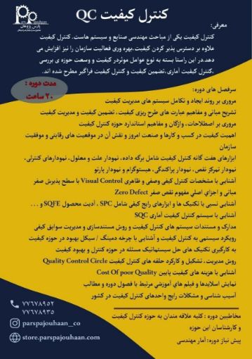 کنترل کیفیت یک ابزار کنترلی سیستماتیک در متغیرهای فرایند تولید است که روی کیفیت محصول نهایی اثر دارد.